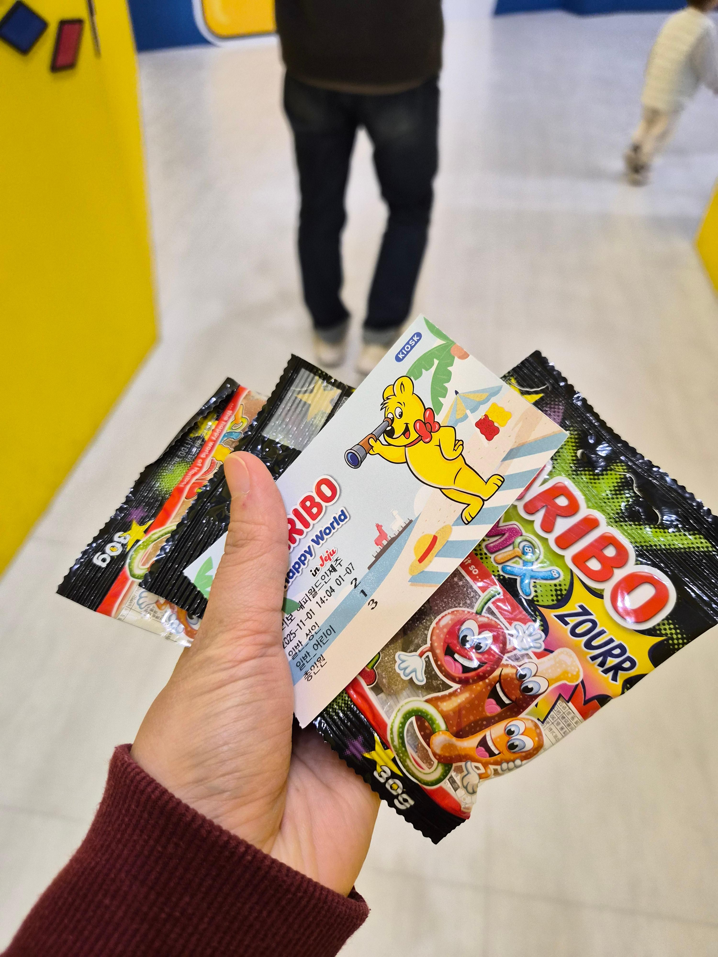 티켓을 받으면 작은 하리보 젤리 샘플도 함께 주는데, 이게 또 은근히 설레더라구요. “하리보 월드 왔다!” 실감 나는 순간!