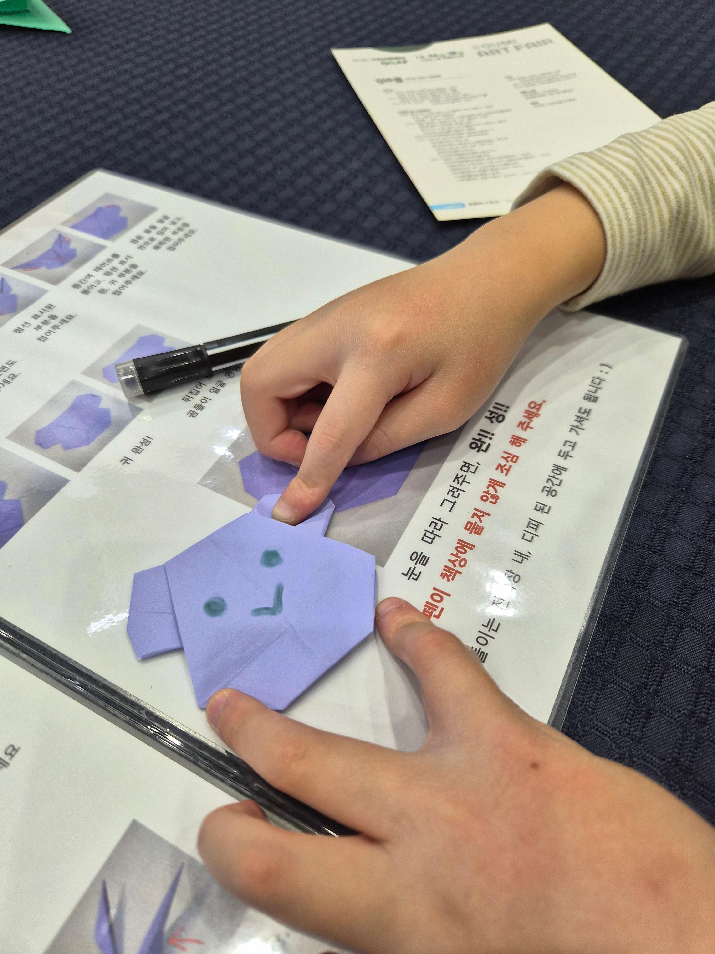 특히 아이들은 종이접기 체험존에서 귀여운 곰돌이와 동물을 접을 수 있었는데 직접 따라 접으면서 집중하는 모습이 무척 귀여웠어요. 결과적으로 좀 어려워서 엄마의 일이 되버렸다는....^^;;