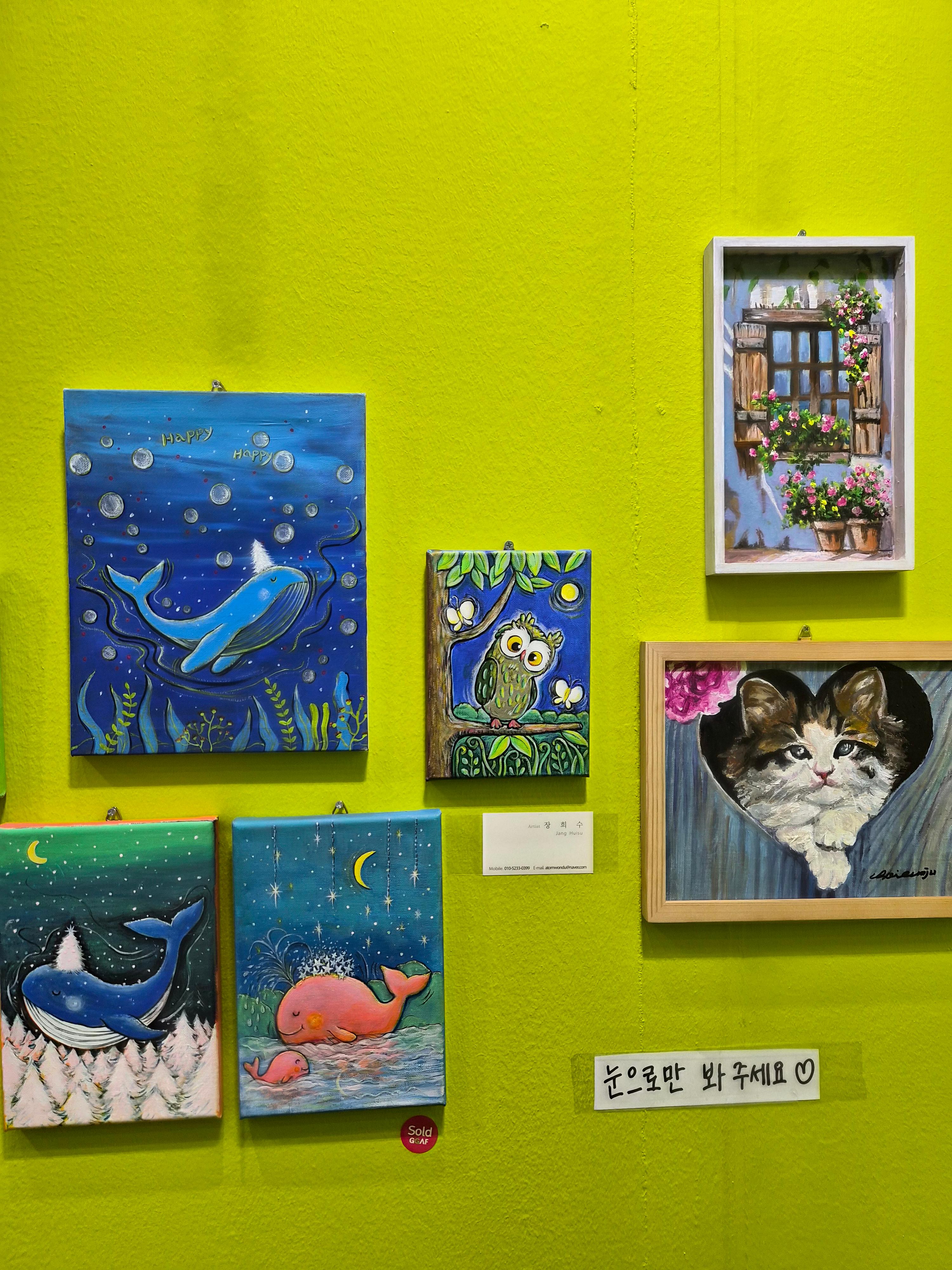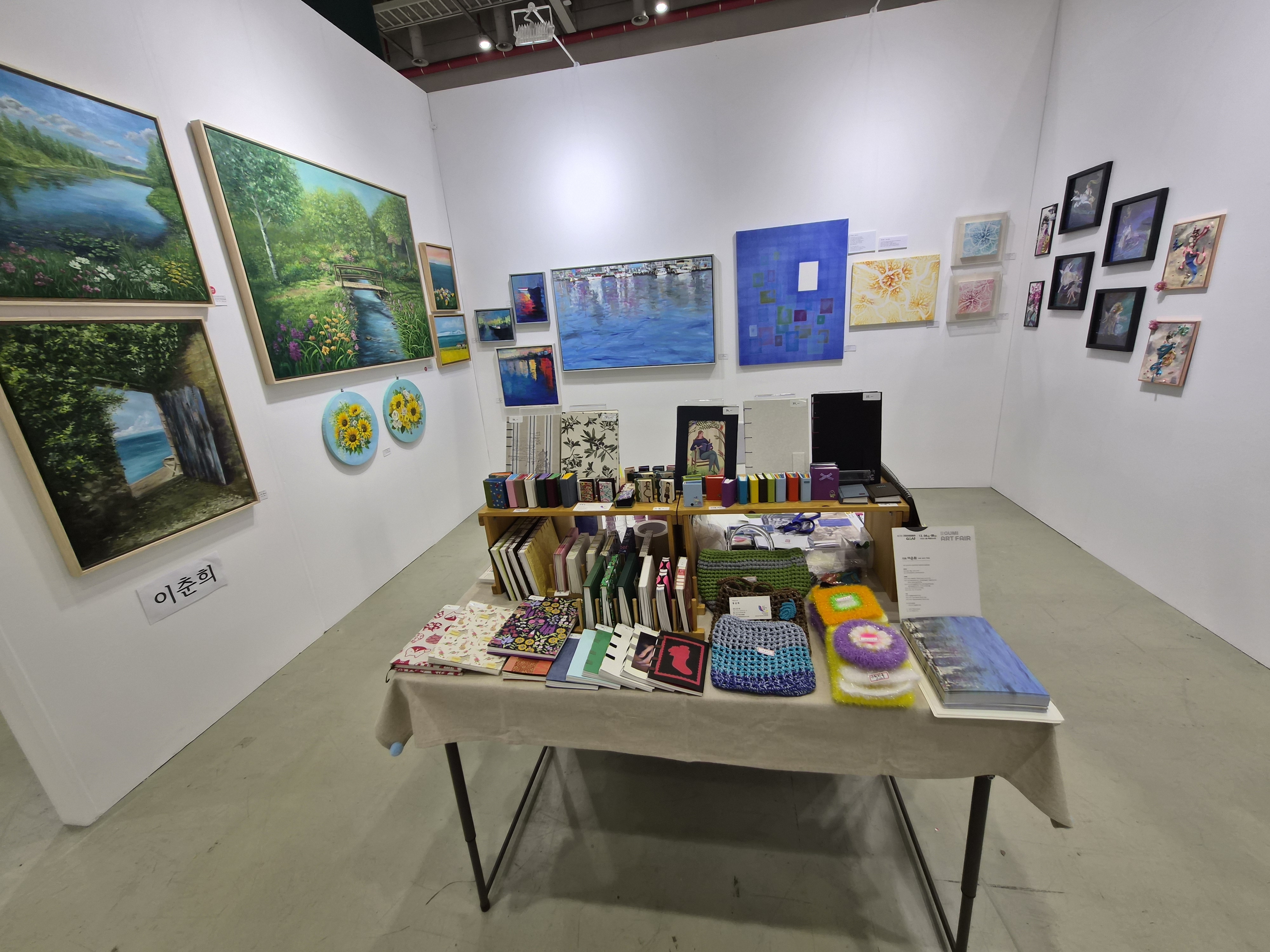 전시장은 작가별로 부스가 나누어져 있었고, 풍경화, 일러스트, 도자기, 추상, 팝아트, 컬러 페인팅 등 장르가 다양해서 천천히 걸으며 감상하는 재미가 쏠쏠했어요.